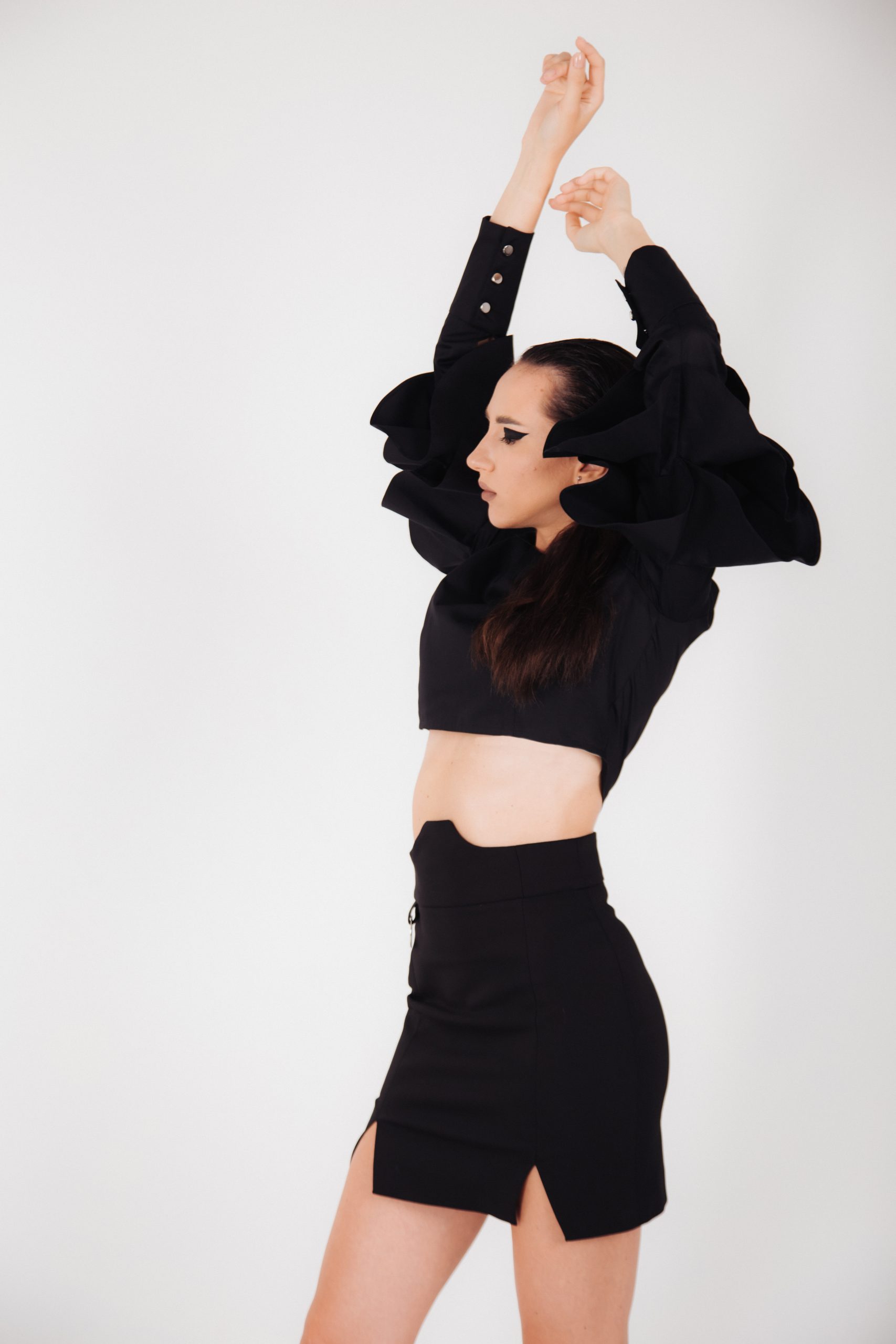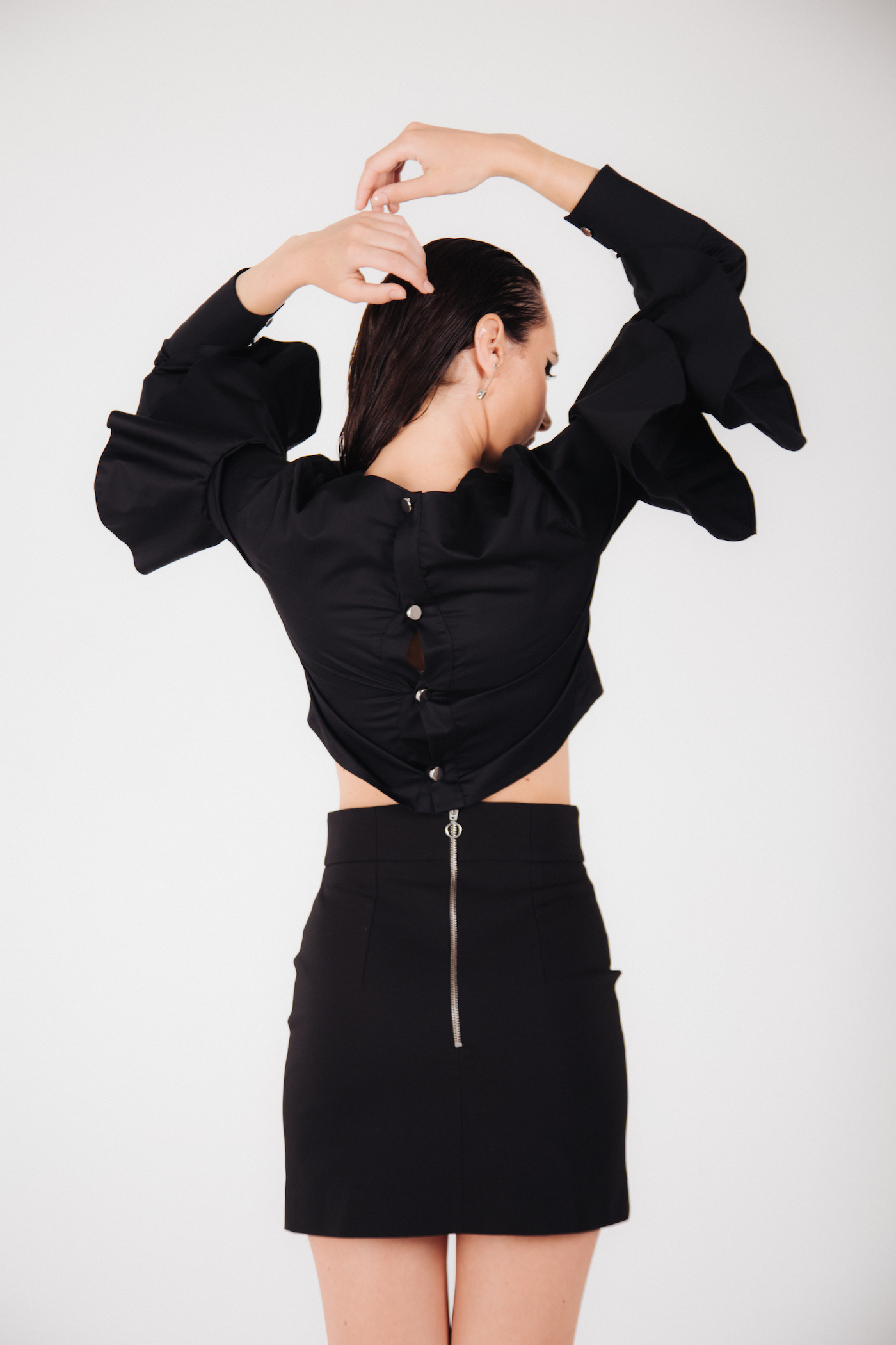 Fusta mini Sonia accesorizata cu un inel metalic argintiu, impreuna cu talia inalta stilizata iti poate oferi un aer powerful si dominant.