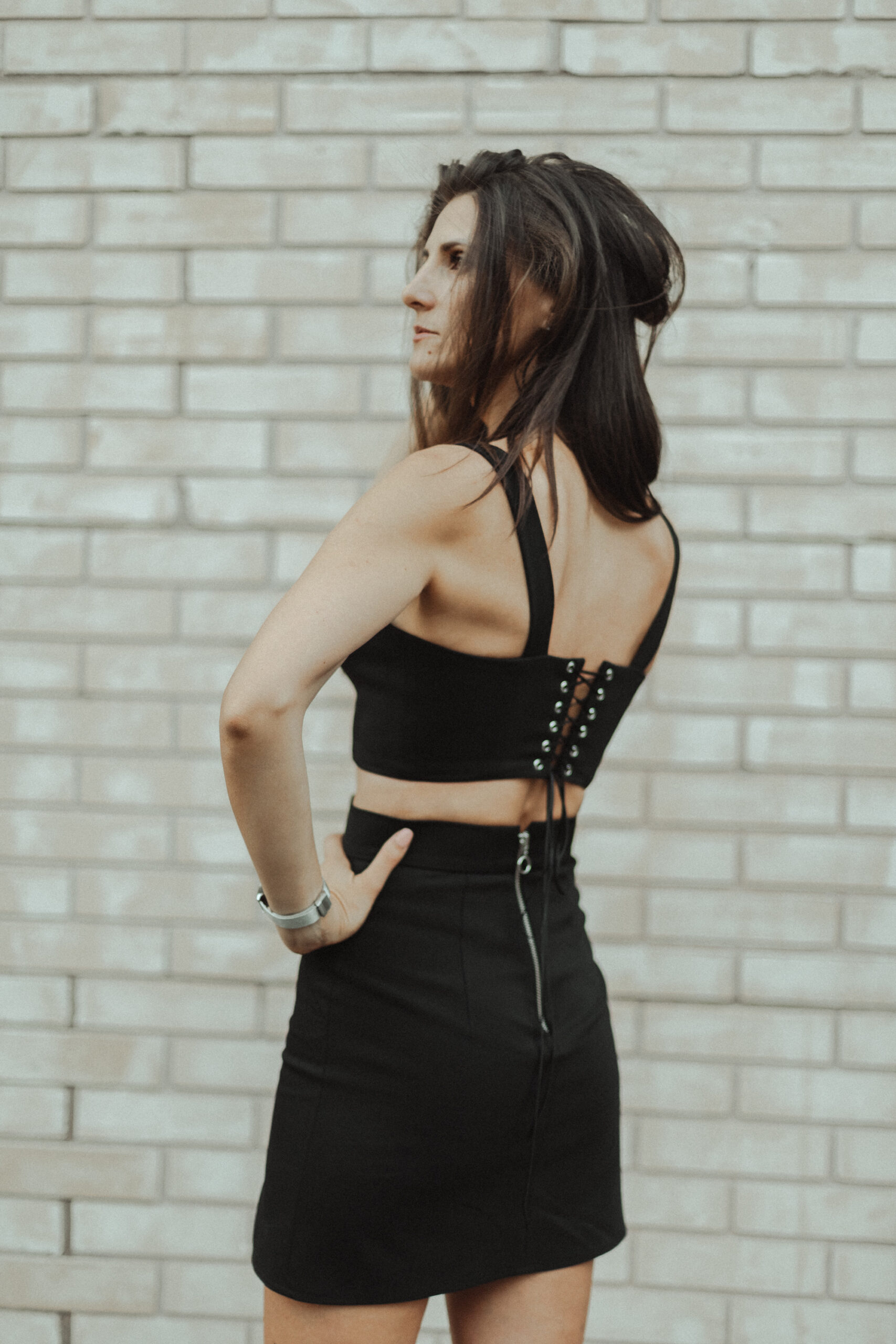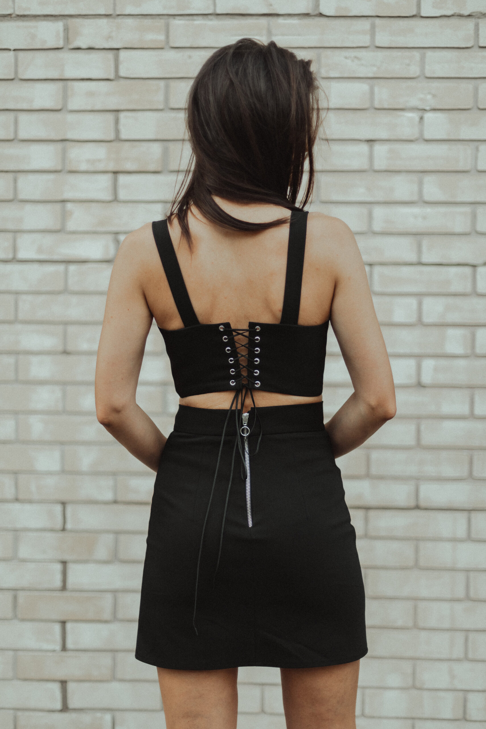 • crop top accesorizat cu ocheti metalici
